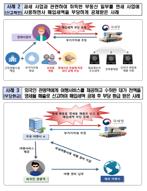 이처럼 부당환급 추징 주요 사례를 보면 적지 않은 사업자가 매출이나 매입매출을 속여 신고하여 가산세 폭탄을 맞는 경우들도 있으니 특히나 주의하셔야 합니다.