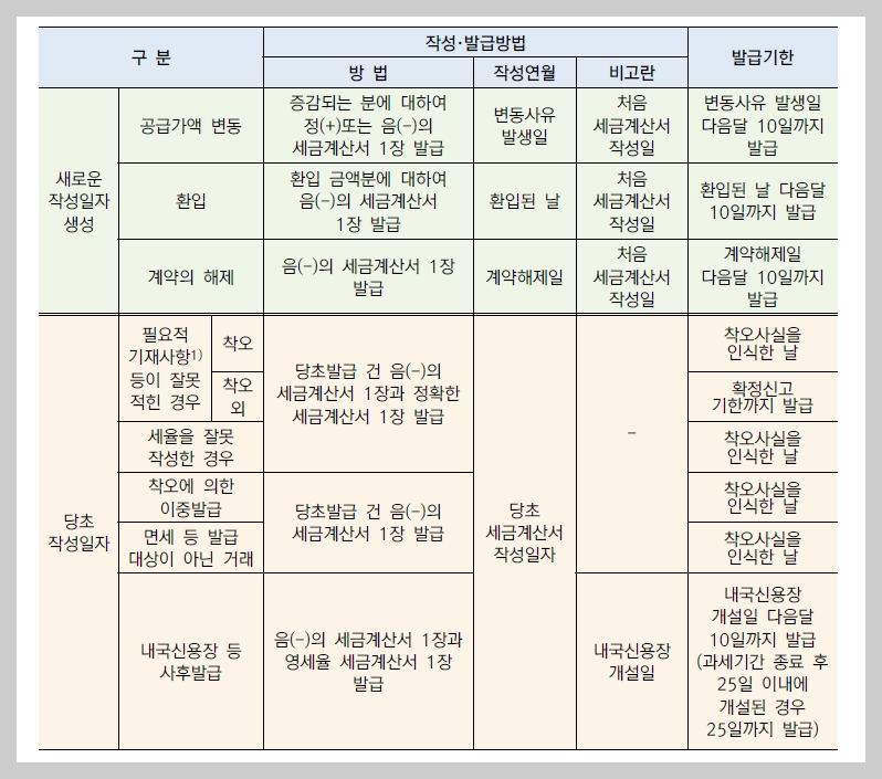 - 발급기한 : 변동사유 발생일 다음달 10일까지 발급