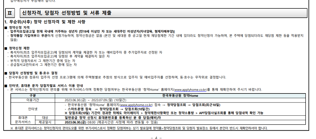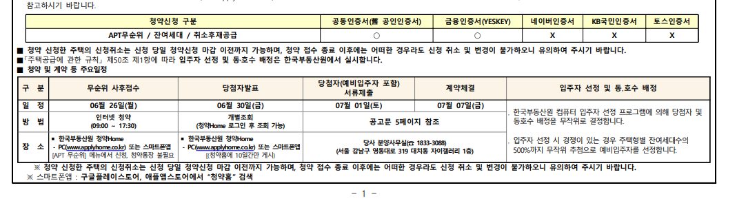 무순위 접수는 6.26일에 진행하였으며, 당첨자 발표는 6.30 (금)요일에 청약홈에서 10일간 게시됩니다.