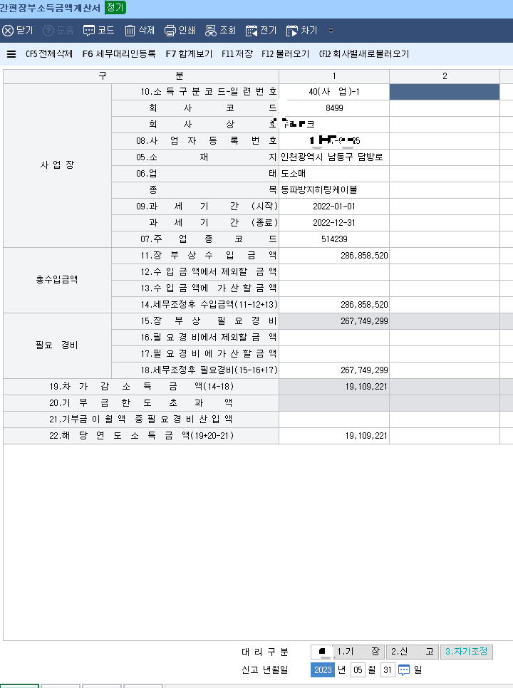 ▲ 대리구분은 세무대리인에게 기장을 맡기신다면 대리구분이 있는것이니, 직접신고하시면 기재를 안하시면 됩니다.